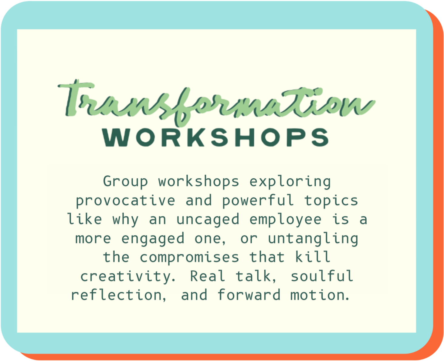 From a recognition that my deepest calling is to create spaces where bright souls can shed these constraints and discover the power of their authentic expression.